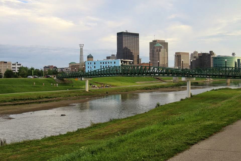 As I was running my last 3.6 miles through the park, into downtown Dayton, Ohio,