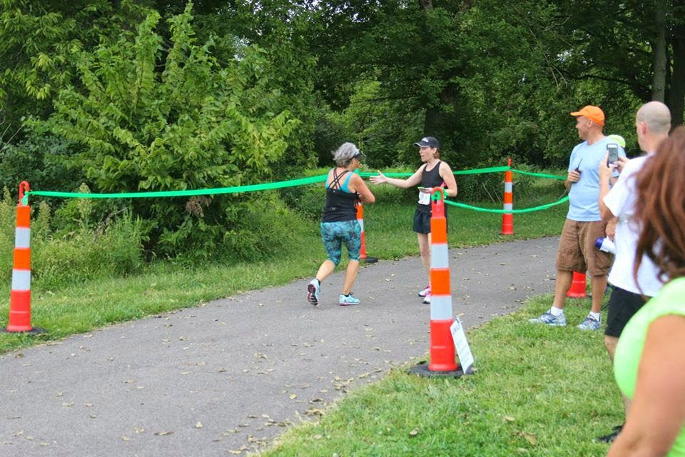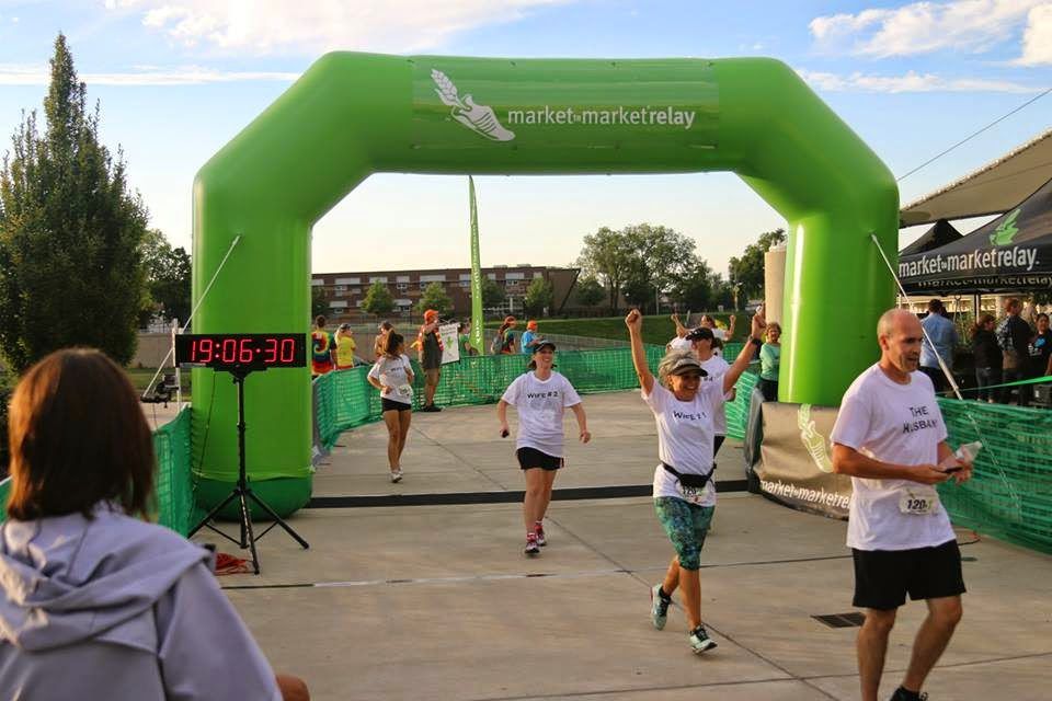 The look on Karen's face says it all. After completing 3 legs of the relay, she can finally say she is done!