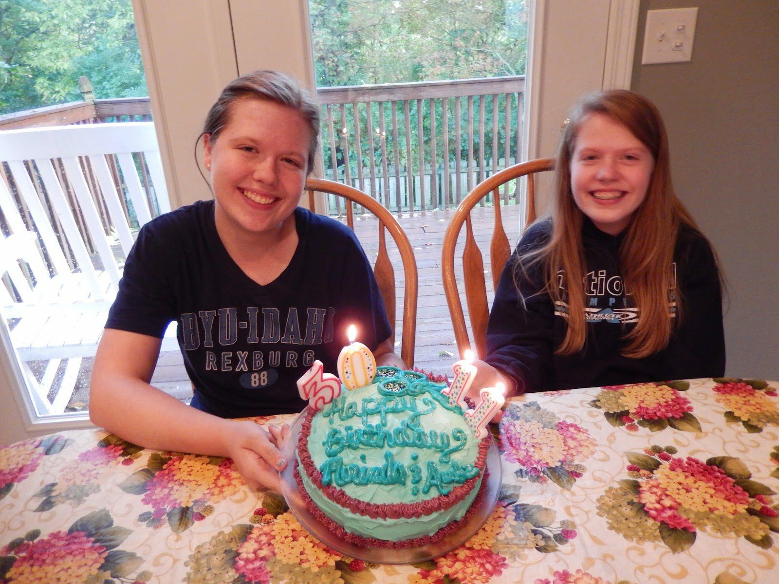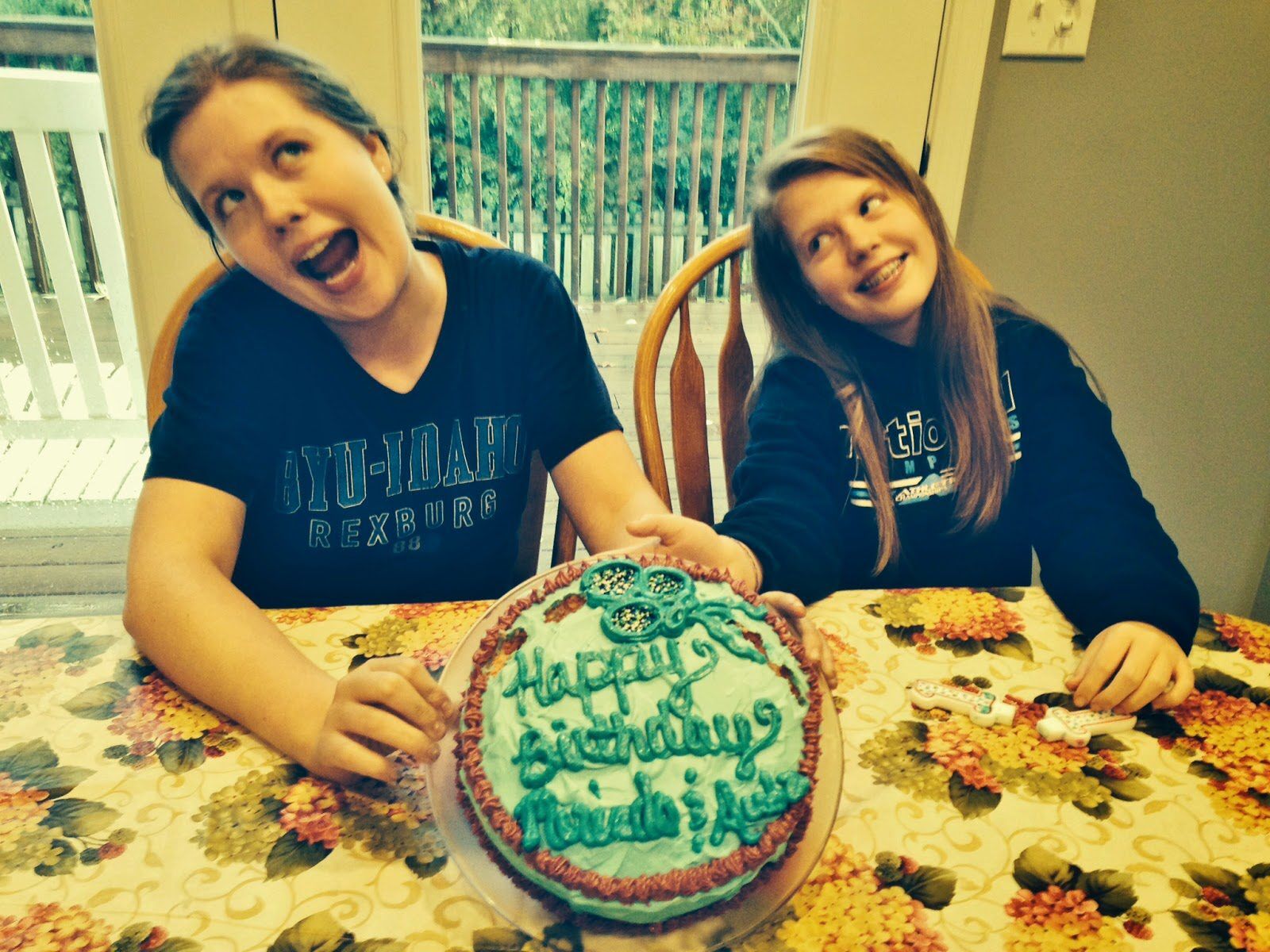 This year we celebrated Merinda and Aubrey's birthdays together, since Aubrey would be at school for her actual birthday. They shared a cake...