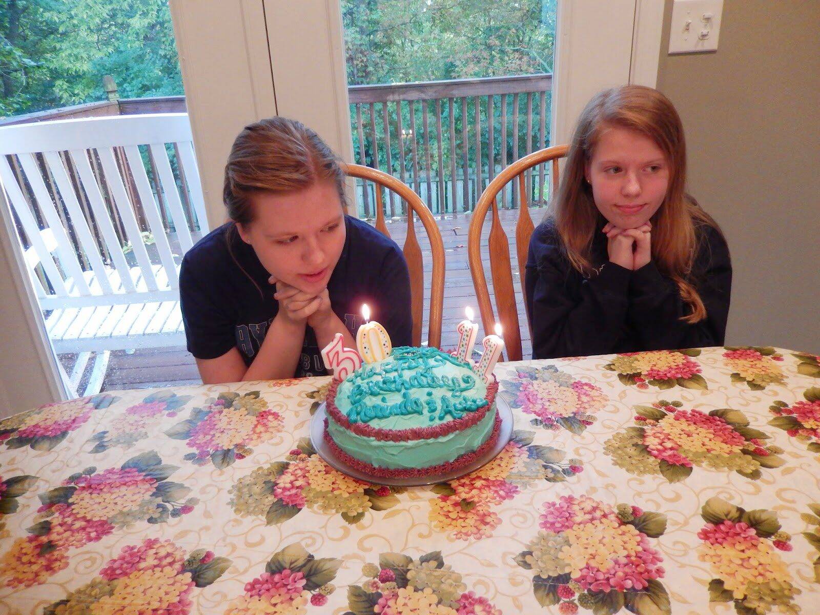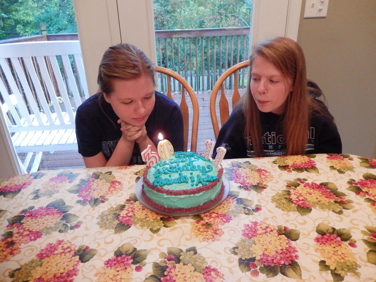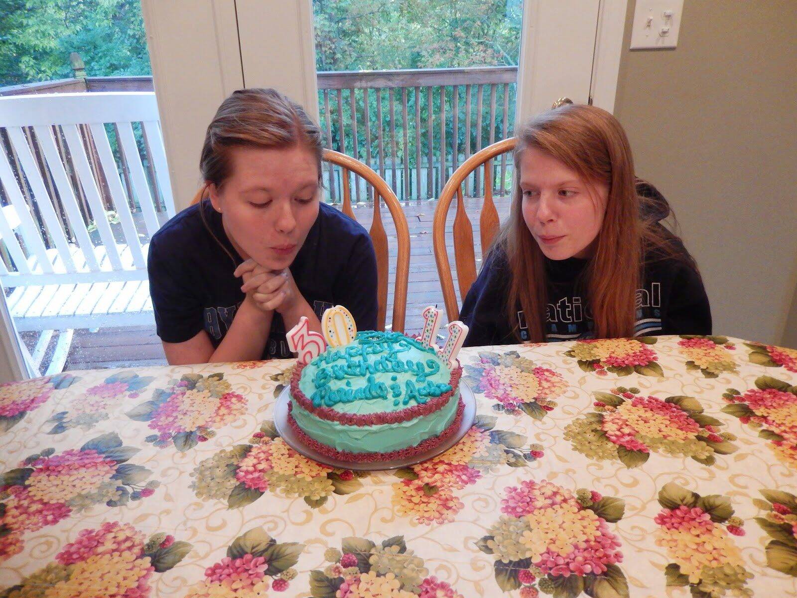 Finally Aubrey blows out her candle, as Merinda continues to fake blow hers (for picture-taking purposes of course).