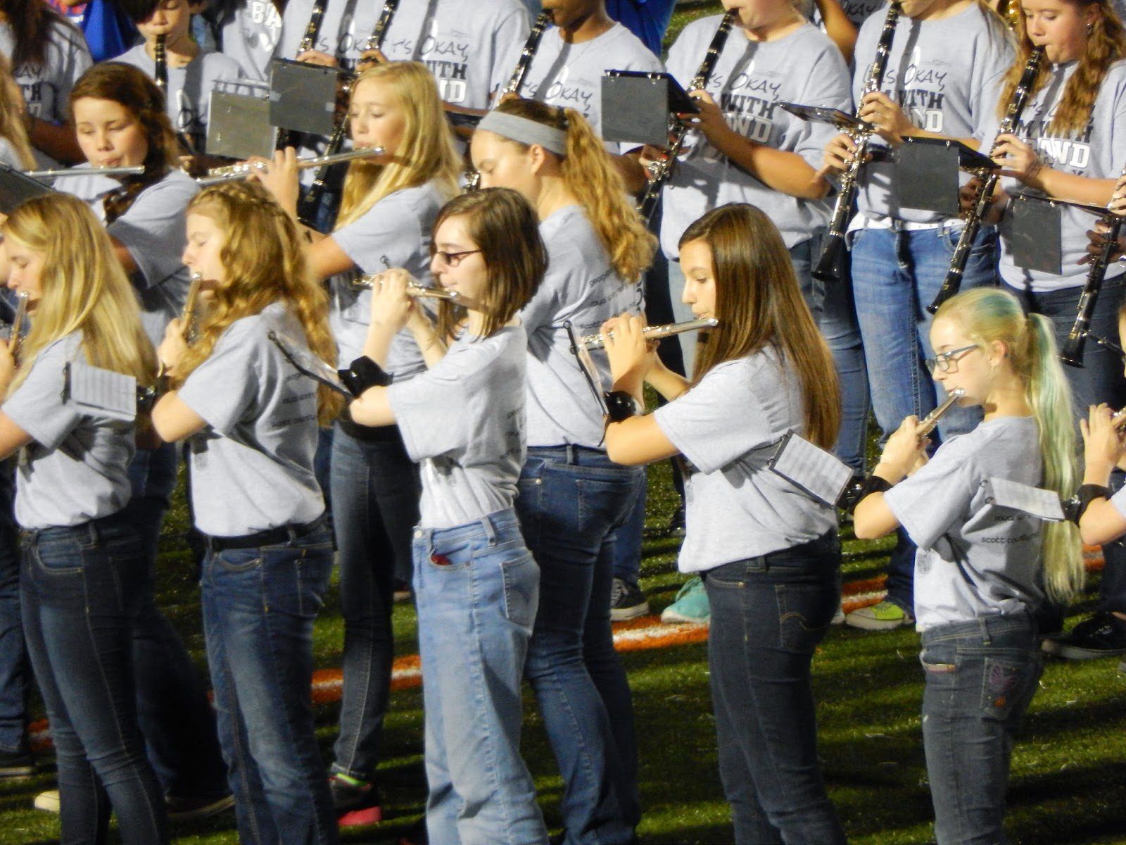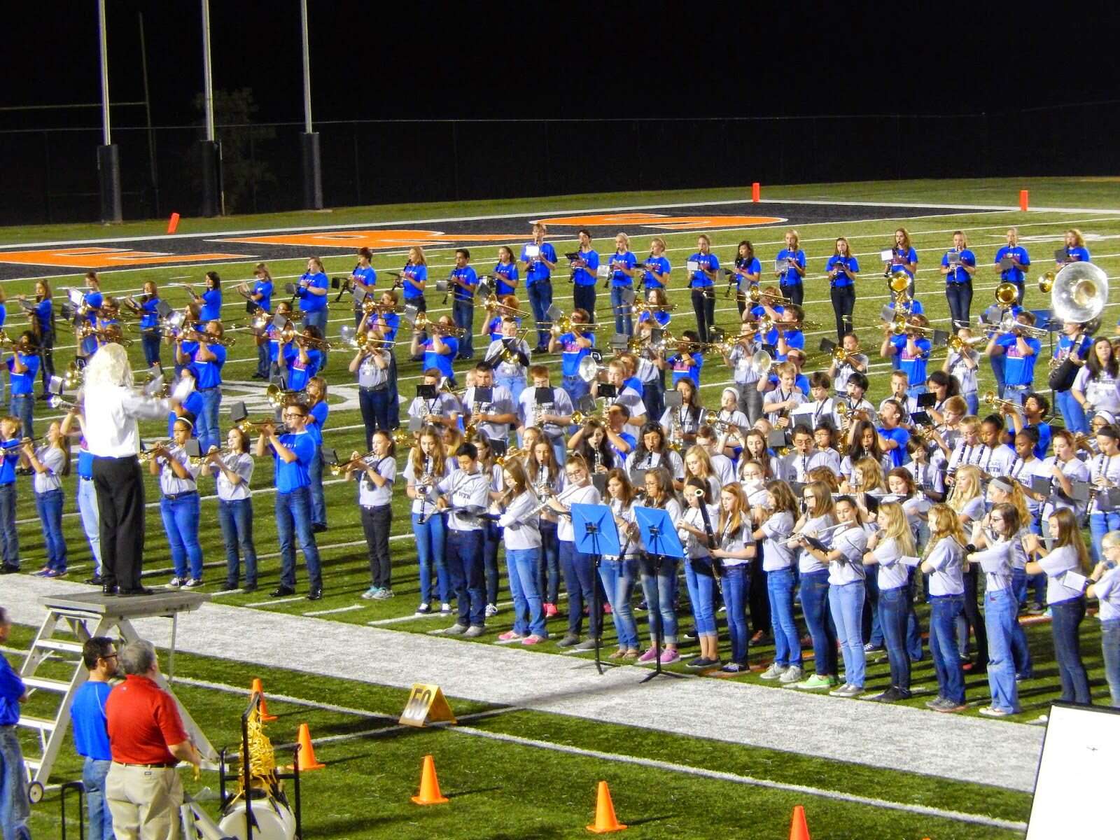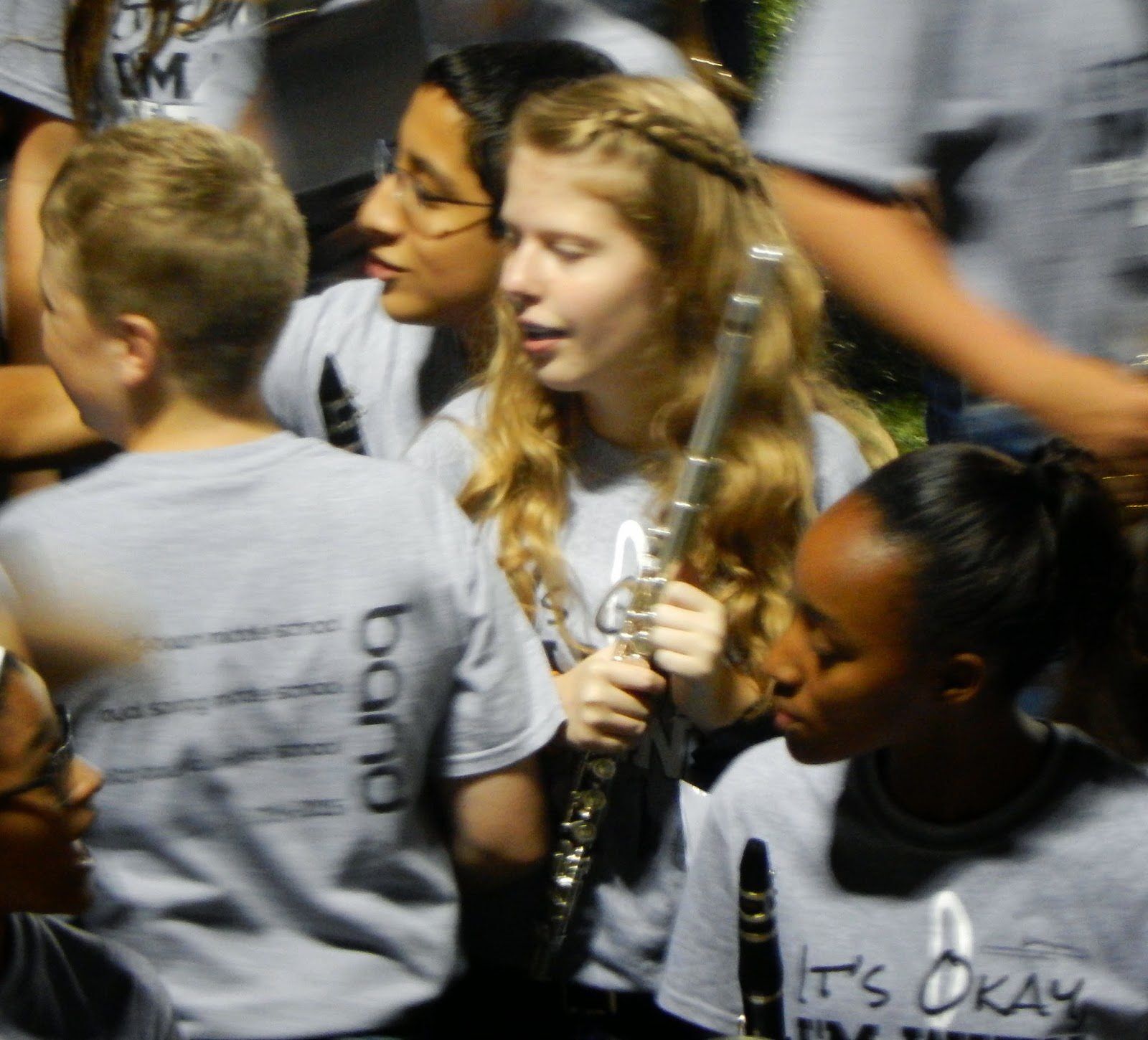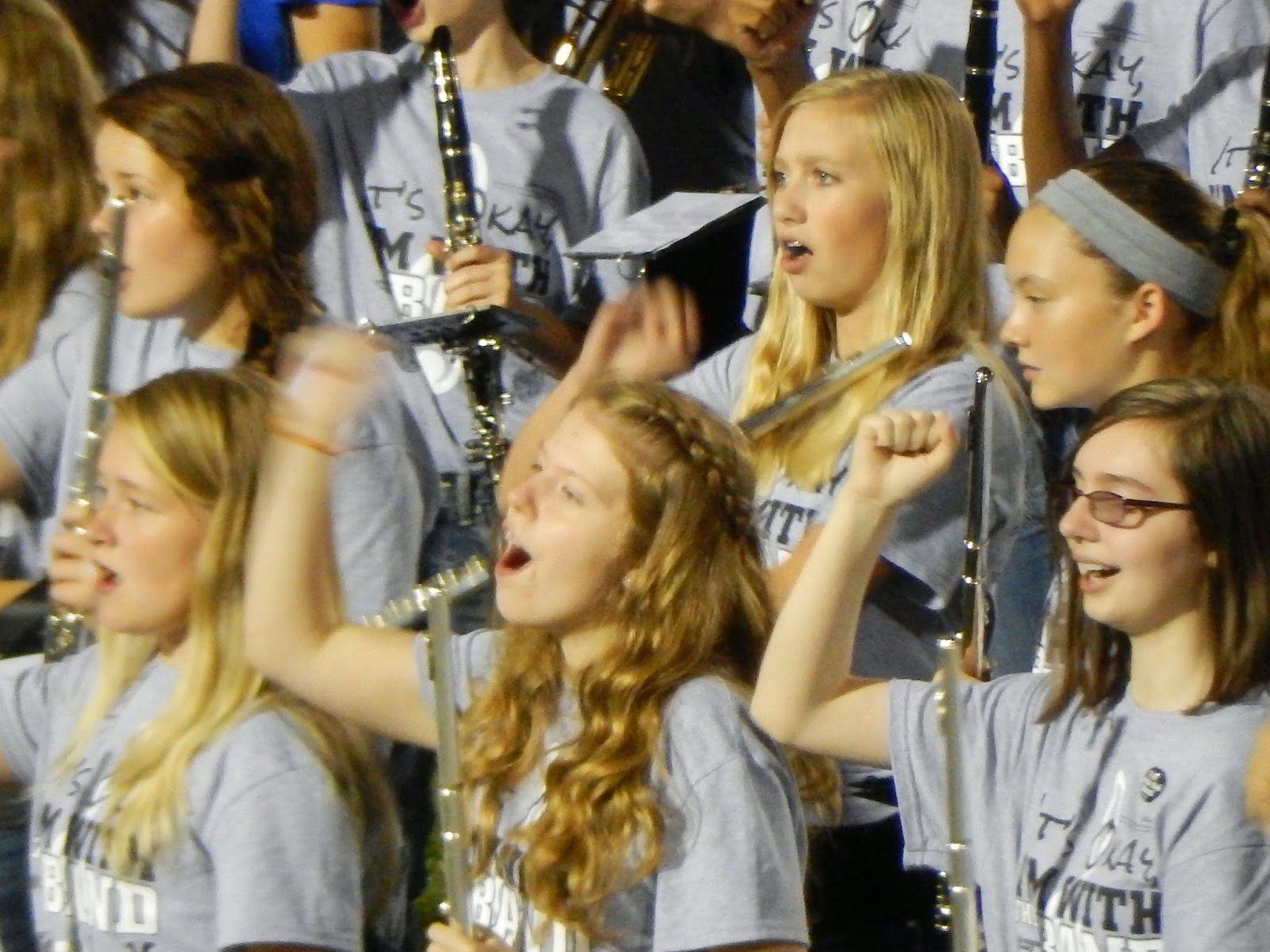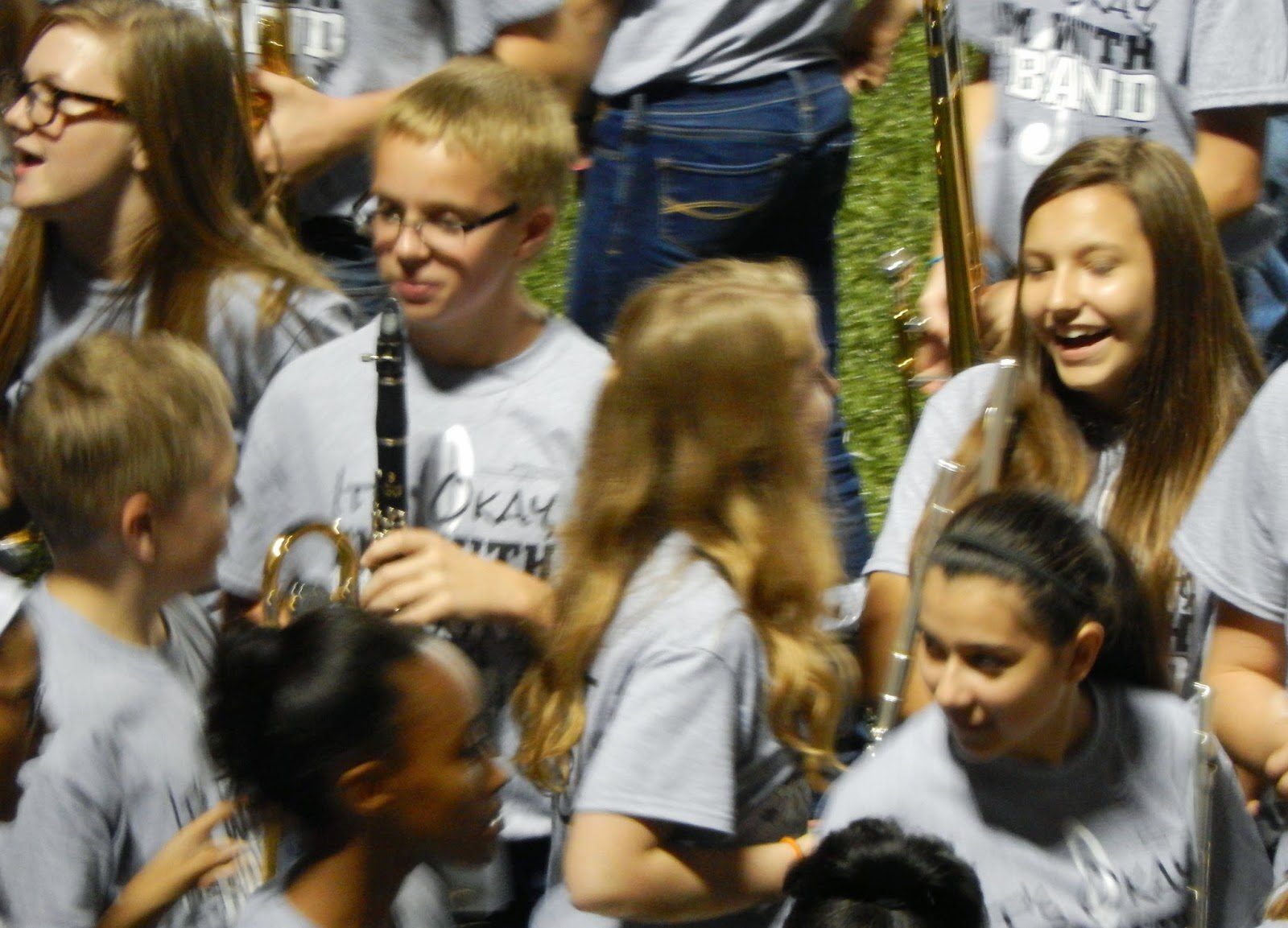Eighth Grade Band Night is always a good time during football season. It is when the three middle school bands join the high school band as they play in the stand, march on the field during the half time show, and mingle while eating eating pizza afterwards.