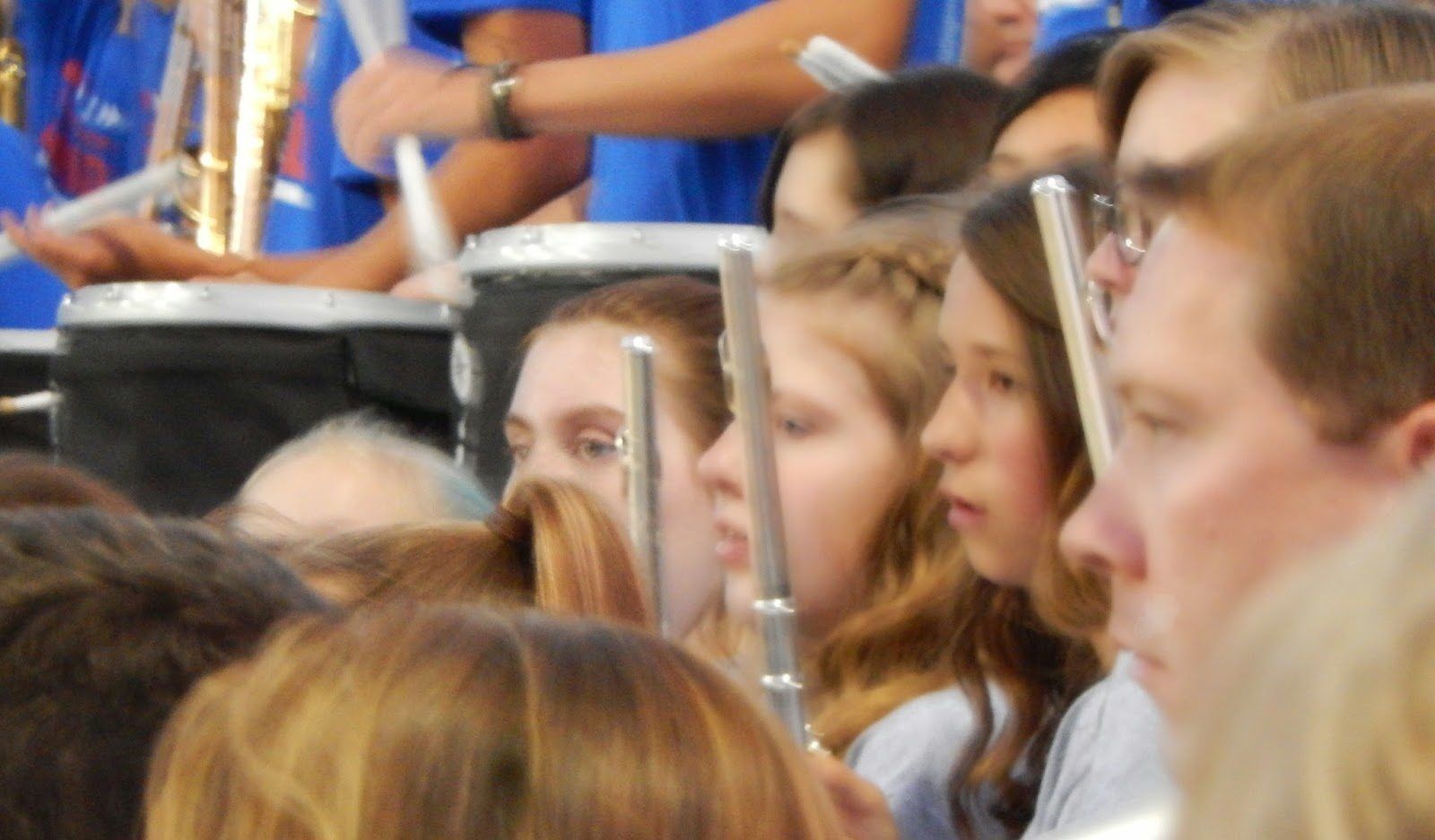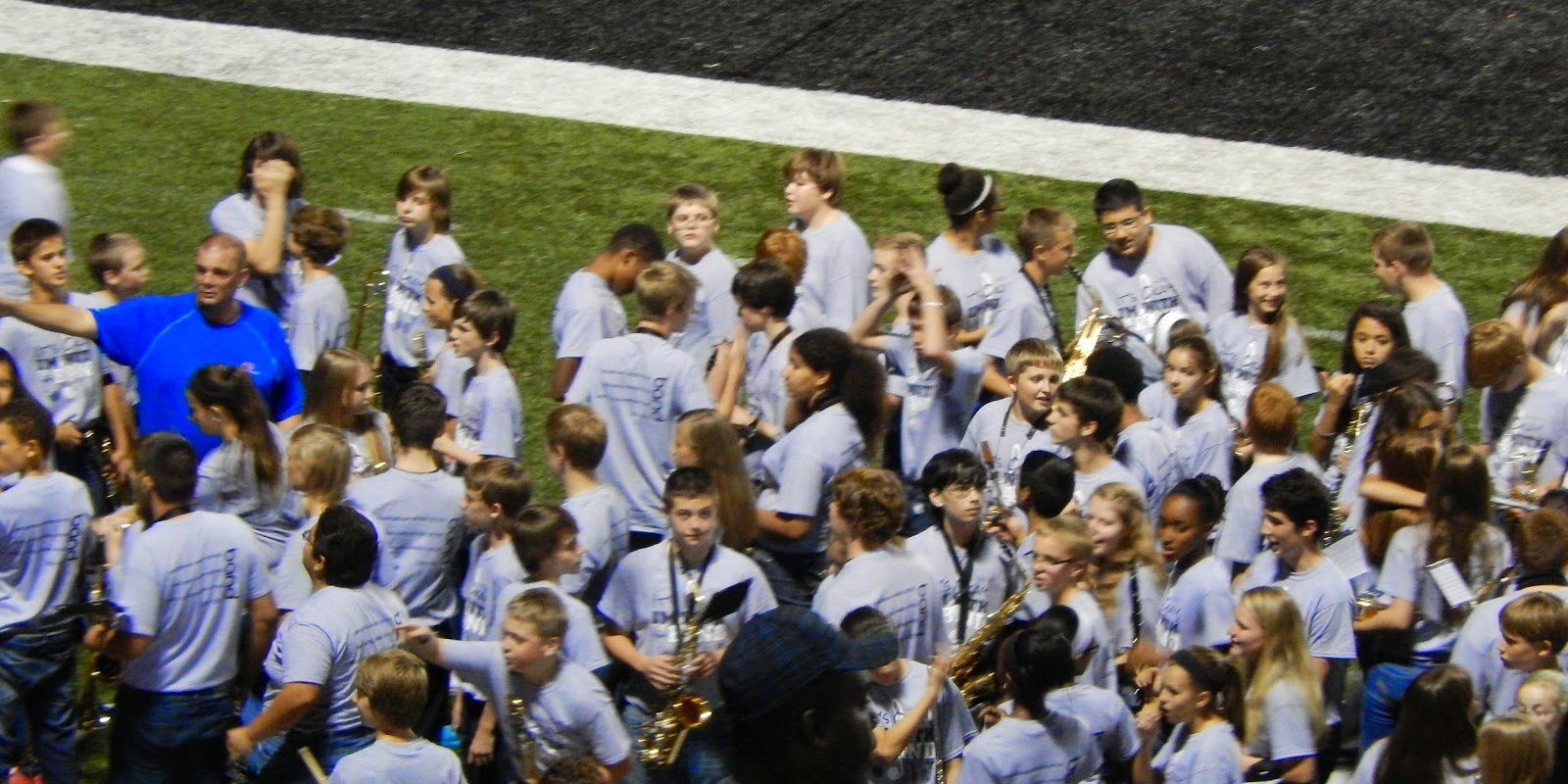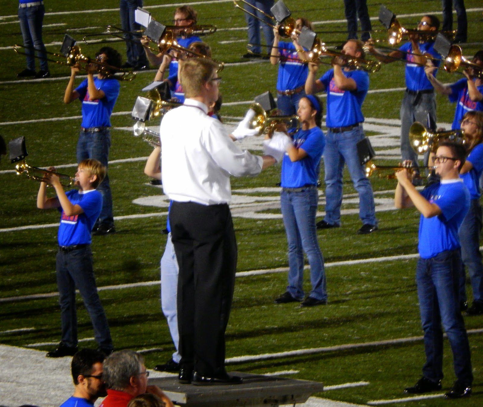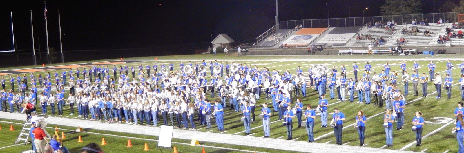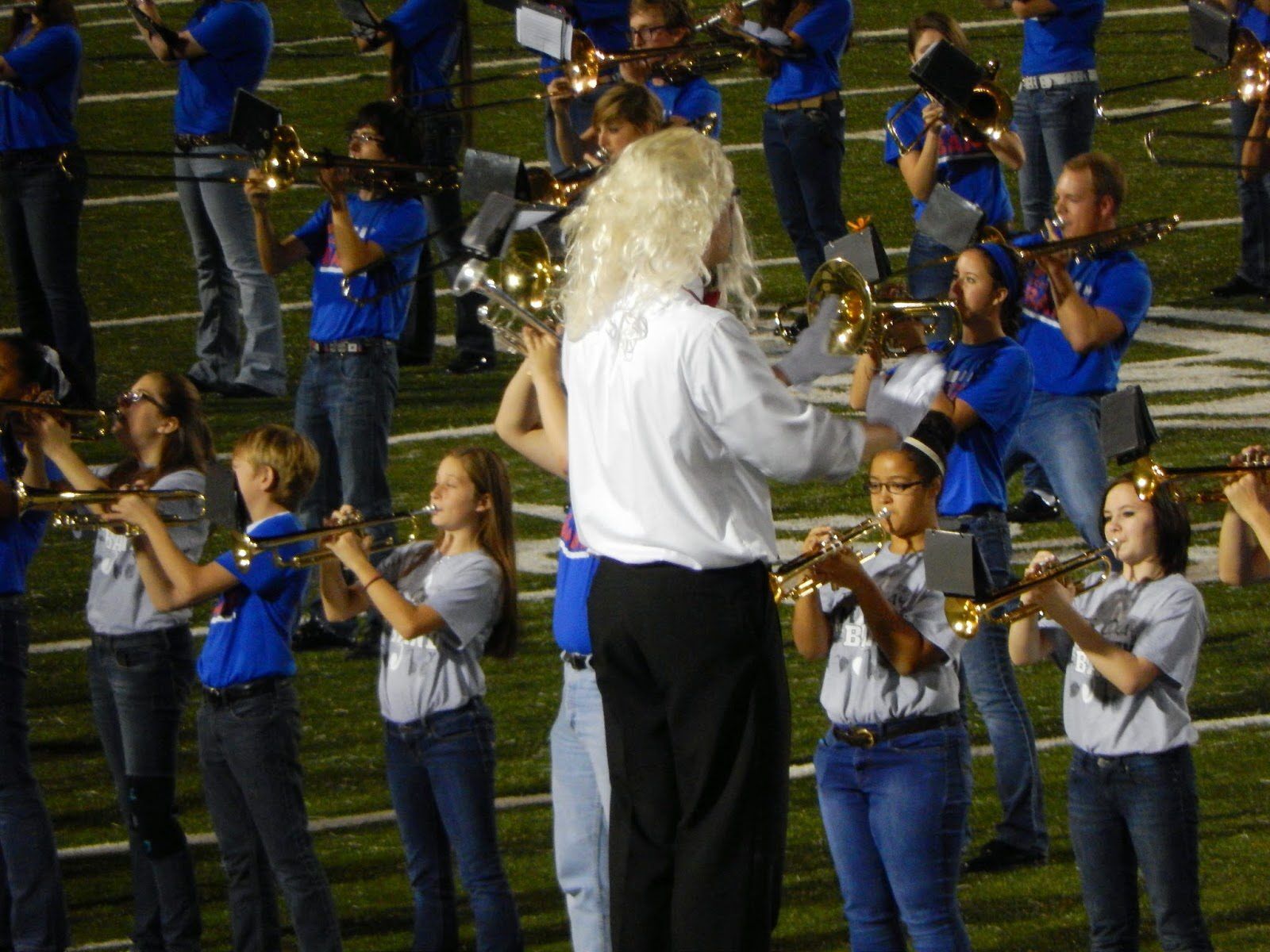Eighth Grade Band Night is always a good time during football season. It is when the three middle school bands join the high school band as they play in the stand, march on the field during the half time show, and mingle while eating eating pizza afterwards.