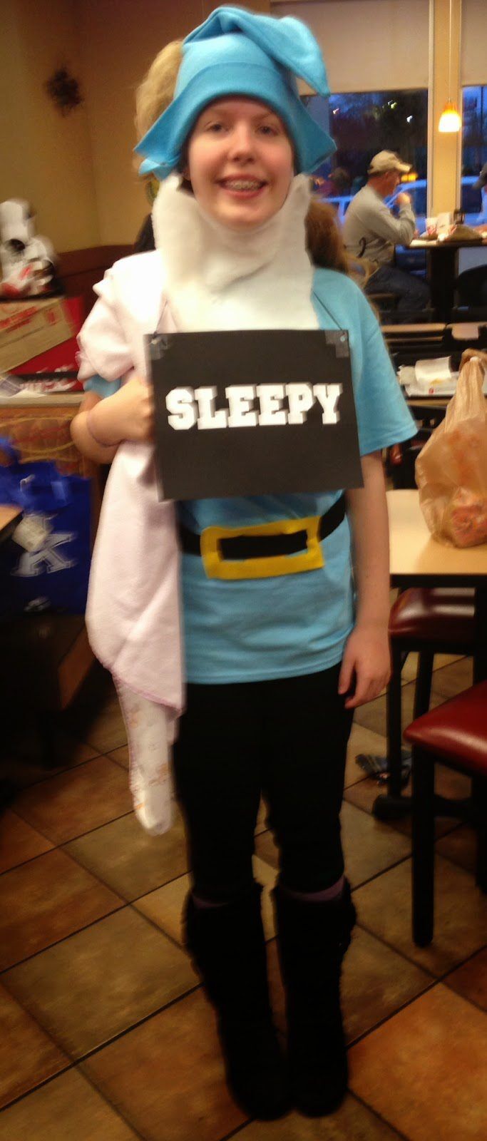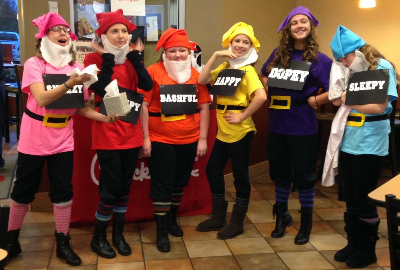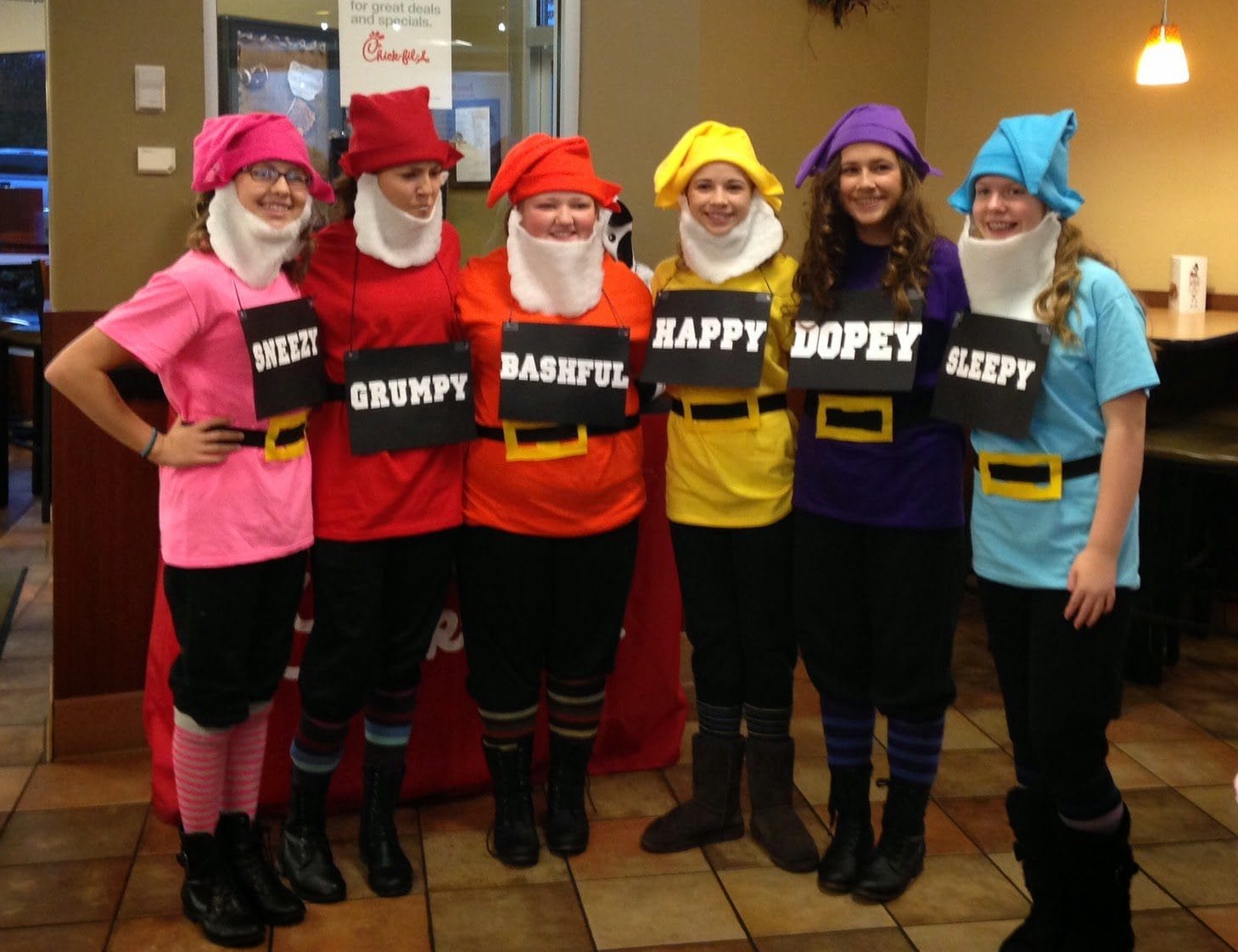 Merinda and her friends dressed up as the Seven Dwarfs.