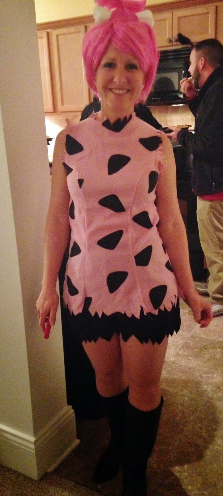 Holly as Pebbles--so glad she wore the wig, even though it was squeezing her head.