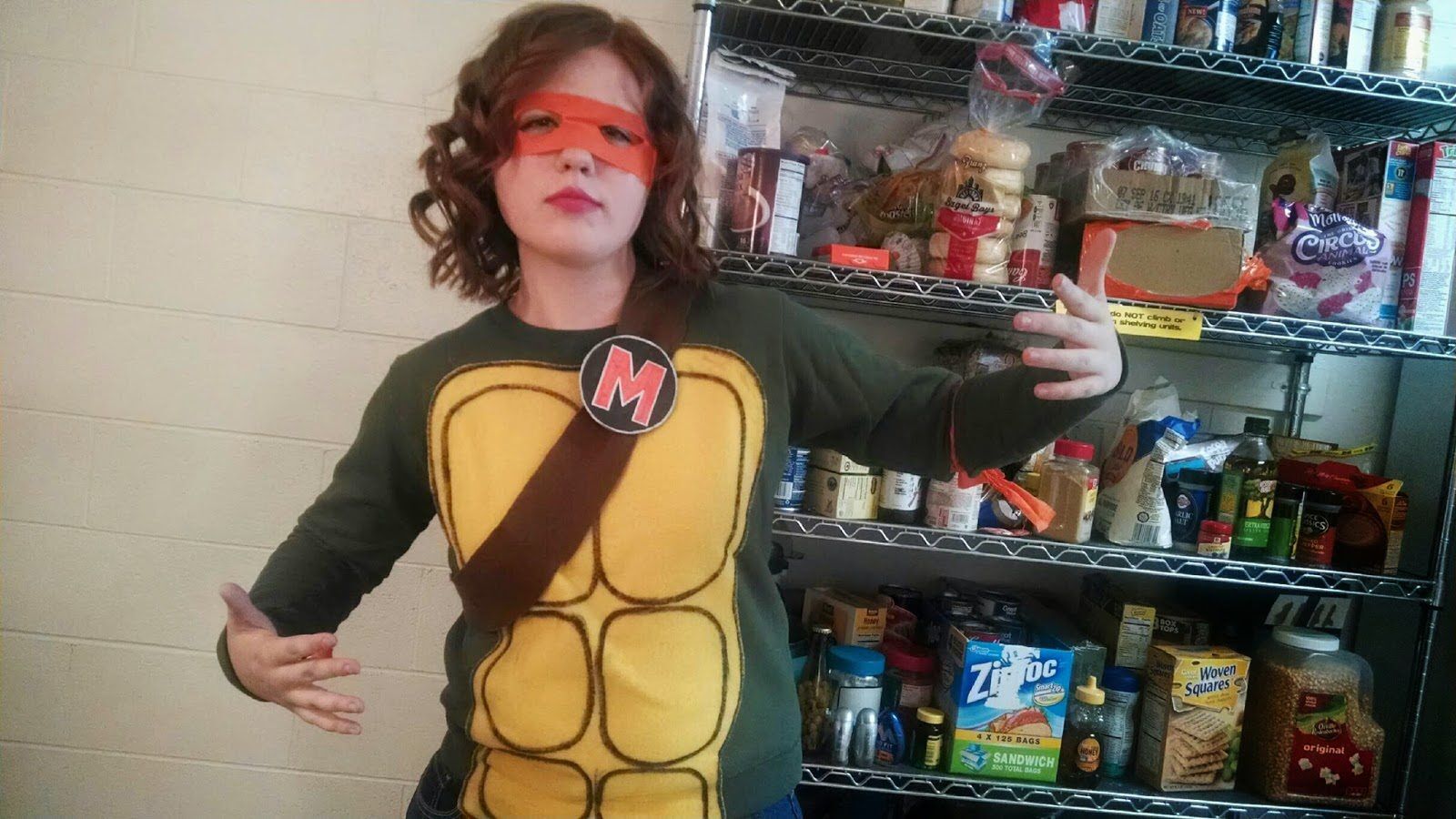 Away at college, Aubrey dressed up as a beautiful Ninja Turtle?