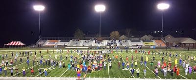 There were so many Senior band members that the football team got tired of waiting and started warming up before we were through. I took this while still standing on the field.