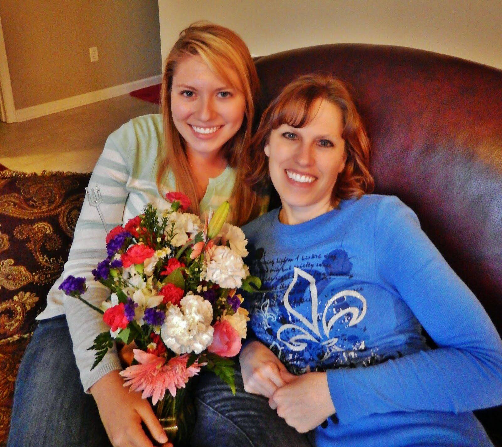 Brittney feeling a little better holding flowers she received from a companion's family, and me, the most grateful mother ever!