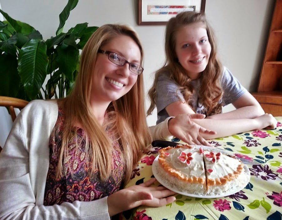 Merinda showing Brittney her cake-making skills. Unfortunately Brittney did not feel well enough to eat the cake.