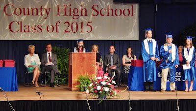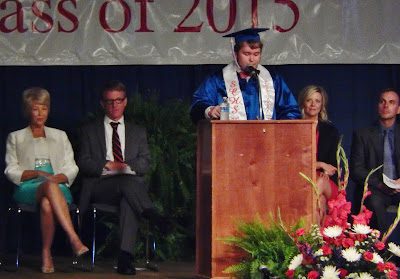 Another friend of Breck's from chorus and drama, Sam Sinkhorn (and Senior Class President) giving the commencement address. On the left is Superintendent Patricia Patty, and SCHS Principle Frank Howatt.