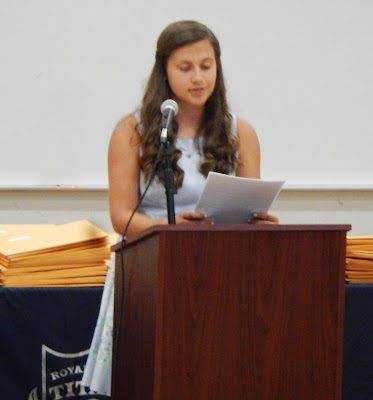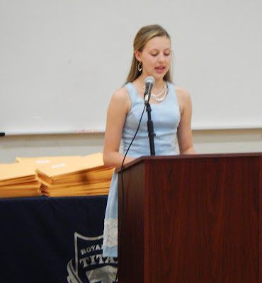 Grace Lyon spoke, she is one of Merinda's best friends and recipient of the Grand Titan Citizenship award_._