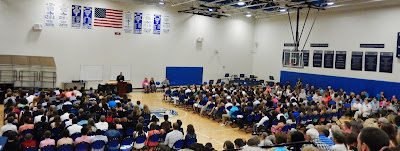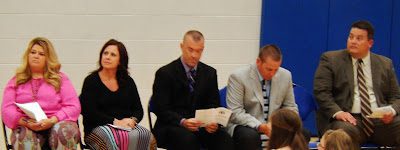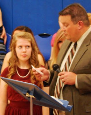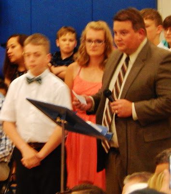 Ms. Carrico (who has taught Math to all four of our children) and Mr. Tencza (Assistant Principle) get ready to announce Nikara Charles' name.