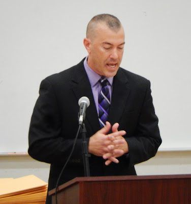 Mr. Griesser, Dean of Students, reading off Merinda's name.