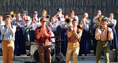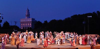 The older couple and single missionaries, Nauvoo Brass Band, and young adults, all performed in a variety show called "Sunset by the Mississippi". It was thoroughly entertaining!