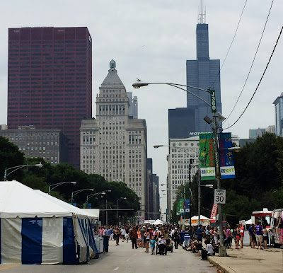 Our first stop was Taste of Chicago, or the "world's largest food festival" held five days every summer in Grant Park (Metropolitan Tower and CNA Plaza in the background).