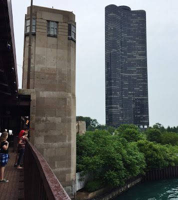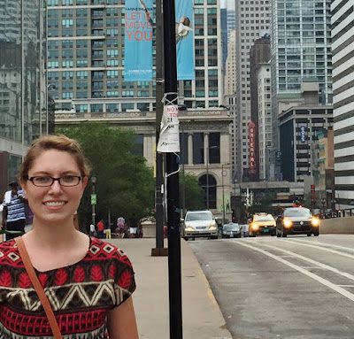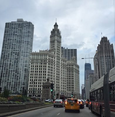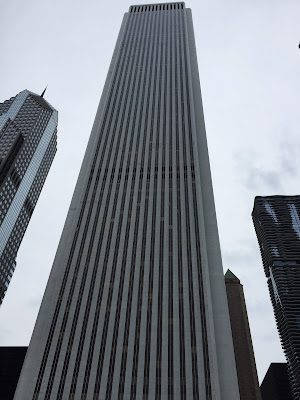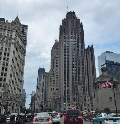 We should have been a little more prepared with descent walking shoes and rain ponchos, but luckily it didn't rain too hard (Randolph Tower and North Michigan Avenue in the distance).