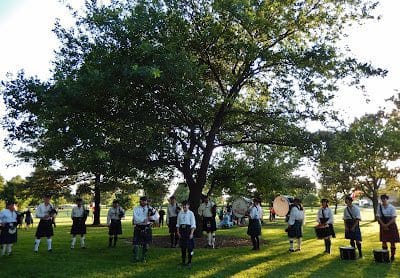 Bagpipes serenading everyone as they entered the fairgrounds.