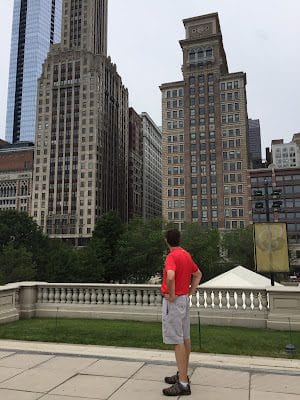 Brad looking at North Michigan and Willoughby Tower buildings.