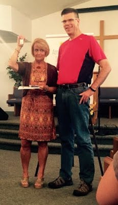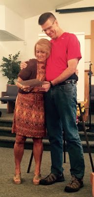 Receiving the award from his instructor at one of the meetings. All the ladies like to gush over Brad (which he doesn't mind a bit), mostly because he is currently the only male in a class of about 50 women.