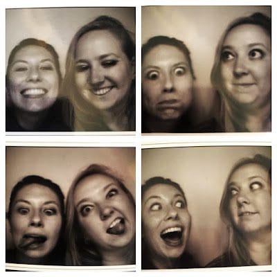 Brittney having fun with a fellow coworker, in the picture booth, during another field trip.