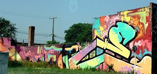 We almost ran out of gas one day and ended up somewhere downtown. If I hadn't been so nervous about running out of gas "in the hood" I would of taken more pictures because this street had building after building of the most creative, colorful, and beautifully painted graffiti!