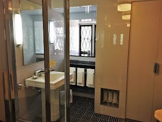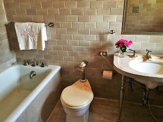 Josephine's bathroom with marble tiles and 14 Karat gold fixtures.