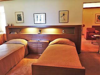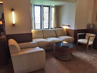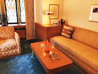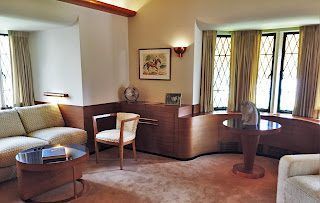 Walter Dorwin Teague, a leading 1930's industrial designer, designed the family's "modern room" with indirect lighting, leather wall panels, and a mirrored wall.