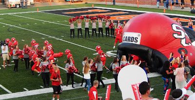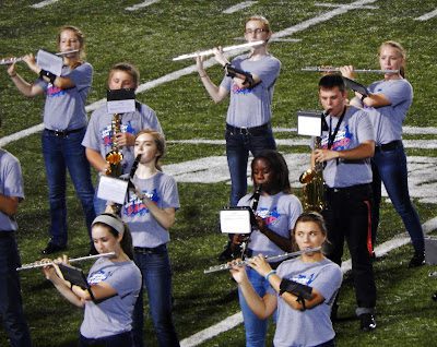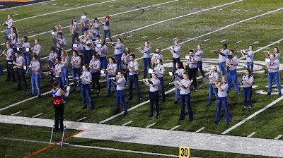 It was fun to watch yet another Manwaring march with the band. Merinda did a great job for her first game, especially when considering how tricky it is to read the notes from your arm, while playing your instrument, while trying to watch the conductors, and march in formation, all at the same time.