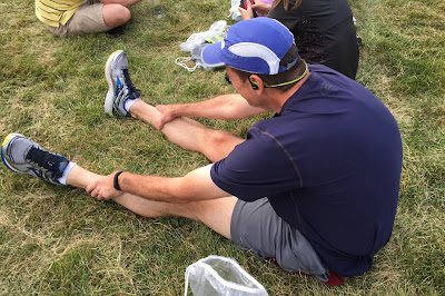 Plenty of grass for stretching before the race.