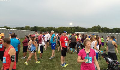 The announcer keeps us informed of the morning events, and time left before the start of the races (the full marathon begins an hour before the half).