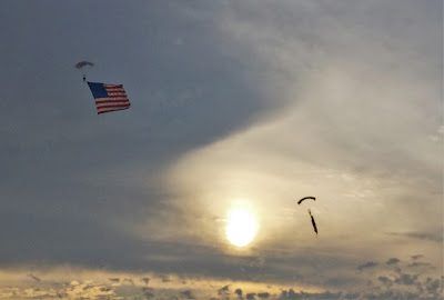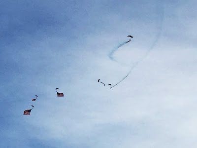 I also love watching the parachuters deploy their chutes and American flags,