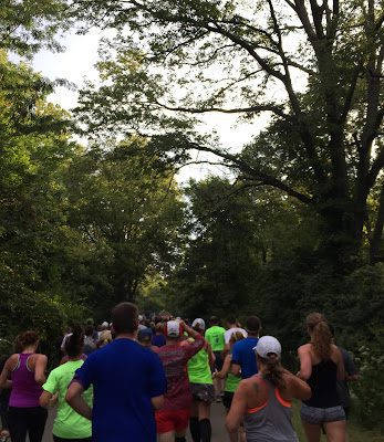 The adrenaline is pumping as the masses start to run, but soon the path disappears into the trees as we get into our groove.