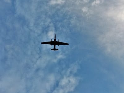 Another favorite part of the morning is the "fly-over" by the race's official airplane. This year it was the U-2 Dragon Lady. Here is comes...
