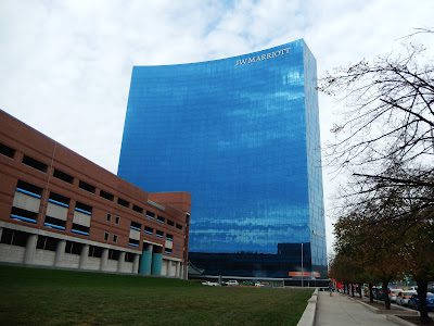 Exploring the sites of downtown: the cool looking JW Marriott Hotel.
