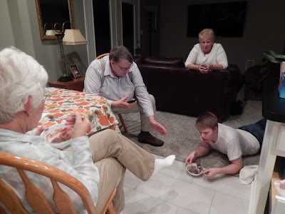 Virginia and Grandpa Manwaring also celebrated their five year anniversary while here. In the interest of time, Mom and I bought them a chocolate cake (their favorite), and it was just as delicious as it looks!