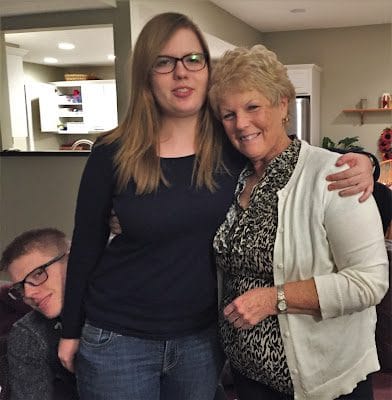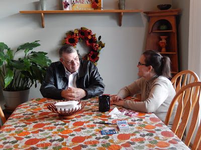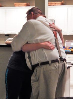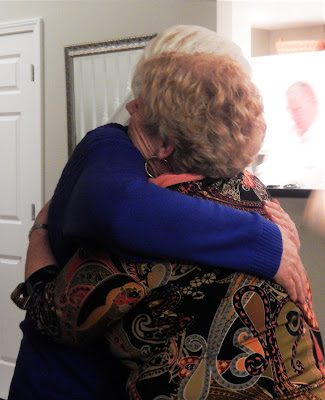 The Wrights lived next to the Manwarings for many years. Grandpa Manwaring catching up with Debbie.