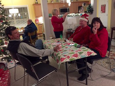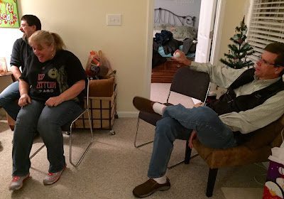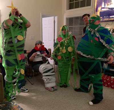 and exchanging white elephant gifts.