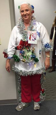 Joanne's character was called "Candy Cane" for everything Christmas. And she received the best costume award.