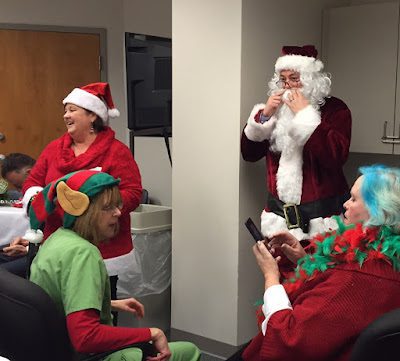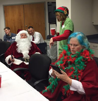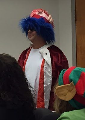Dr. Birdwhistell made the perfect Santa Clause, and Beth the perfect Mrs. Clause (she has the blue hair).