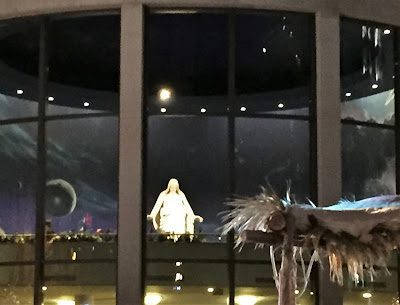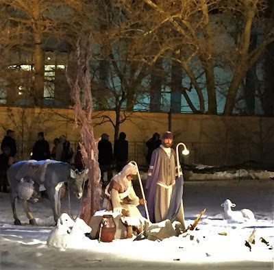 Half way through our walk my fingers froze, so Merinda had to take over as photographer. She got some nice shots, including this picture of the Christus with baby Jesus' manger in the forefront.