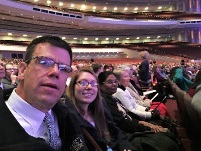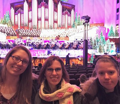 Brittney, being a good sport and posing with me in front of the unique Christmas tree, in the Conference Center foyer. The Spoken Word usually takes place in the Assembly Hall on Temple Square, but luckily for us, during peak times it's held in the Conference Center to accommodate more people.