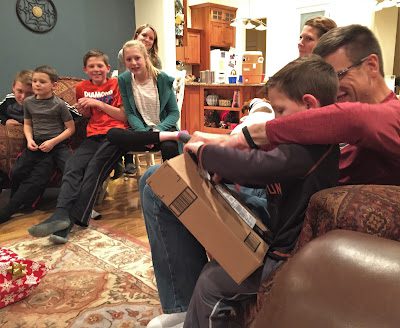 and Ty helping Brad unwrap his.