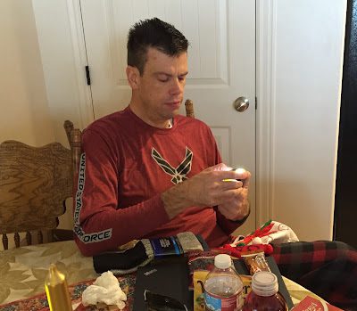 Brad enjoying his stocking treasures.