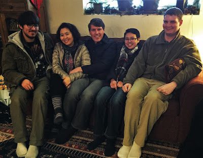 Opening our stockings Christmas morning (Merinda wasn't quite ready for pictures).