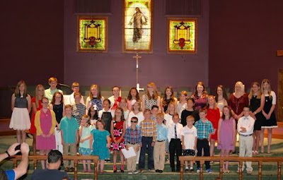 And Merinda did a great job at her piano recital playing "Pachelbel in Cannon D". Her teacher, Truett Gonzales (used to be Mason), is the same teacher that Brittney and Aubrey had. This is a picture of Truett's current students - the recital was held at a church here in town.
