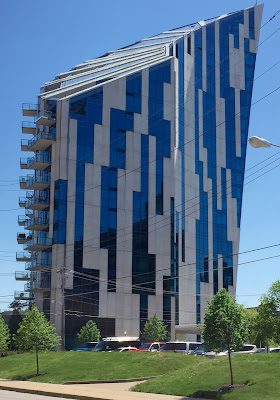 I've always seen this building from the freeway, but it was interesting to see it up close. I thought it was painted blue and white, but the blue part is actually windows.