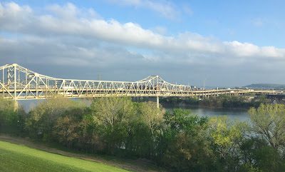 John A. Roebling Suspension Bridge, a U.S. National Historic Landmark, built in 1856.