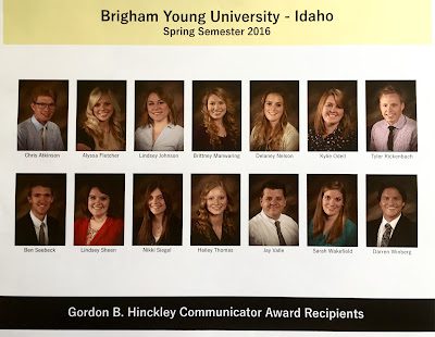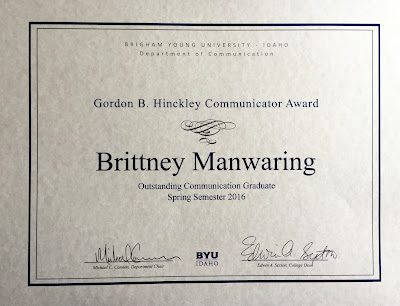 Brittney receives the prestigious Gordon B. Hinckley Communicator Award.