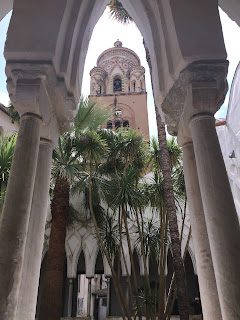 The Cathedral & Bell Tower are in the Arab-Sicilian style with stripes, arches, and mosaics.