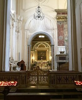 The Cathedral with paintings from the life of St. Andrew and granite columns found at the Paestum Greek ruins.