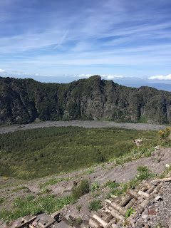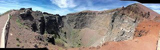 Panorama of inside Mt. Vesuvius' crater, where the steamy vapors of sulfur gas can still be seen.